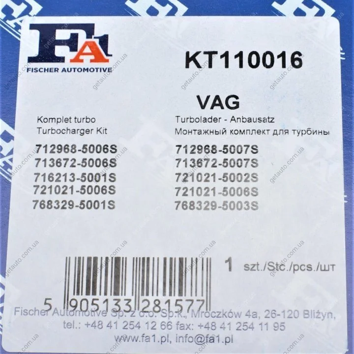 Аналоги "KT110016 Fischer Automotive One (FA1)":
