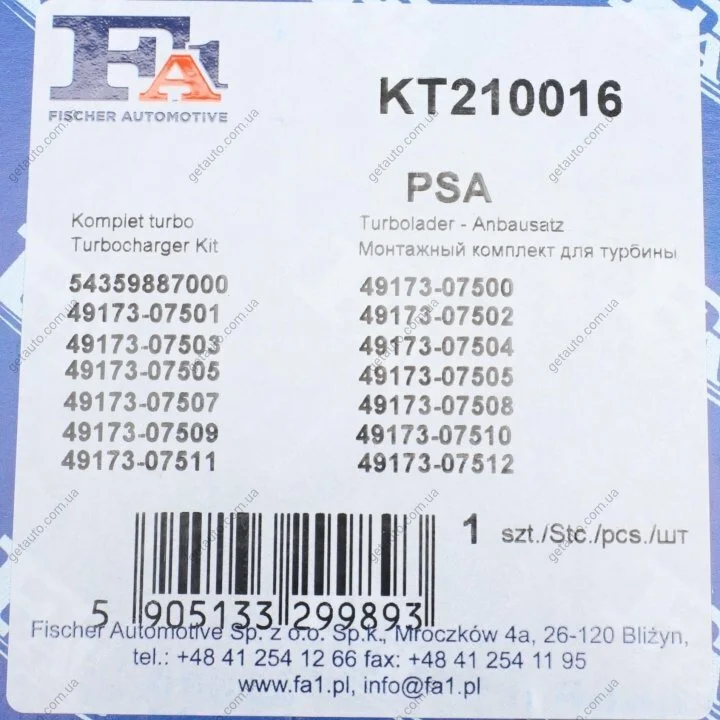 - Fischer Automotive One (FA1) KT210016 підходить до марок/моделей авто: