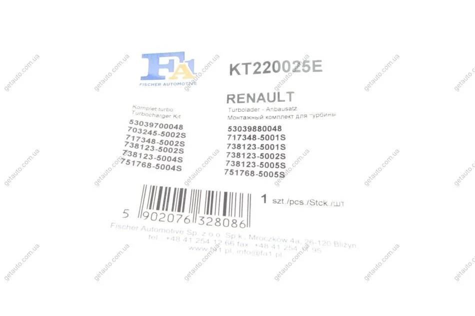 - Fischer Automotive One (FA1) KT220025E підходить до марок/моделей авто: