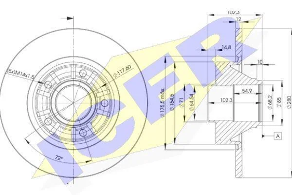 ⌀ отвору маточини [мм]: 72