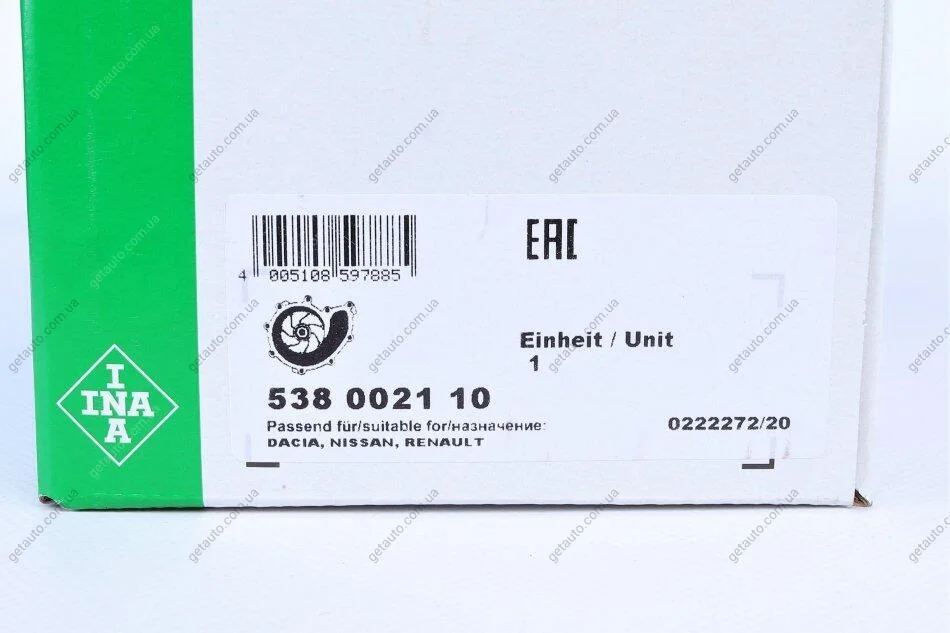 Насос водяний RENAULT Ruville 65516 INA 538 0021 10