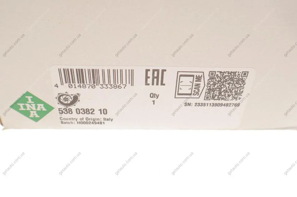 - INA 538 0382 10 підходить до марок/моделей авто:
