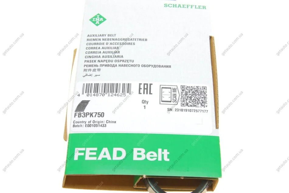 Ремінь генератора поліклиновий INA FB 3PK750