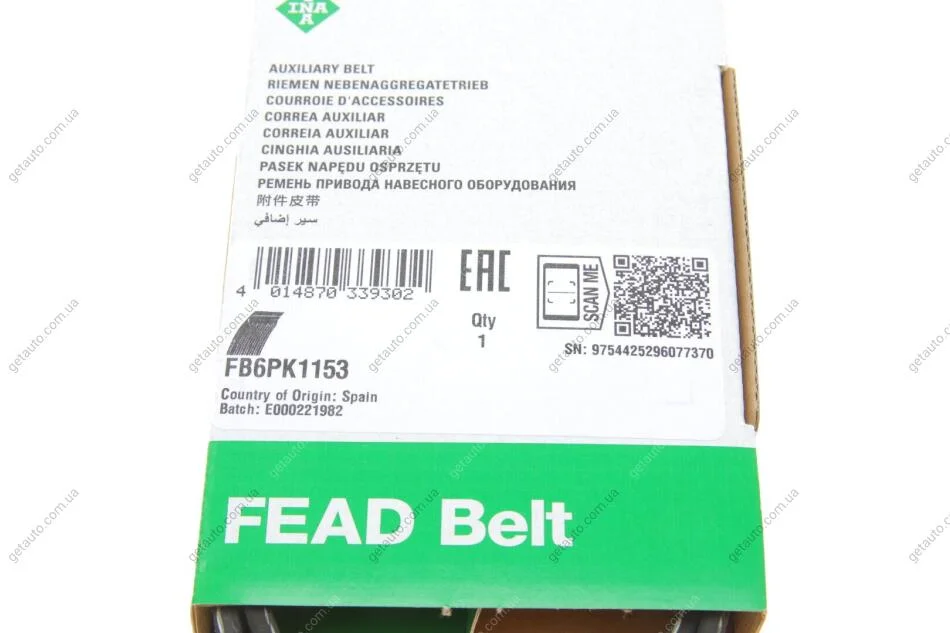 Ремінь генератора поліклиновий INA FB 6PK1153