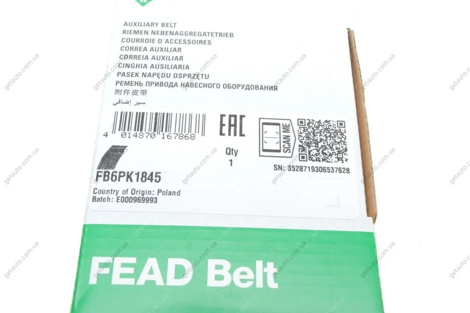 Ремінь генератора поліклиновий INA FB 6PK1845