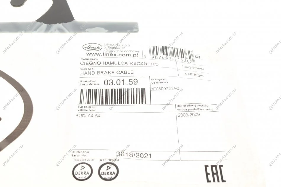 Трос ручного гальма LINEX 03.01.59