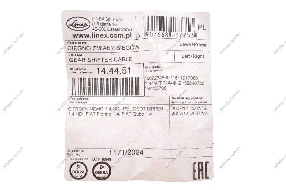 - LINEX 14.44.51 підходить до марок/моделей авто:
