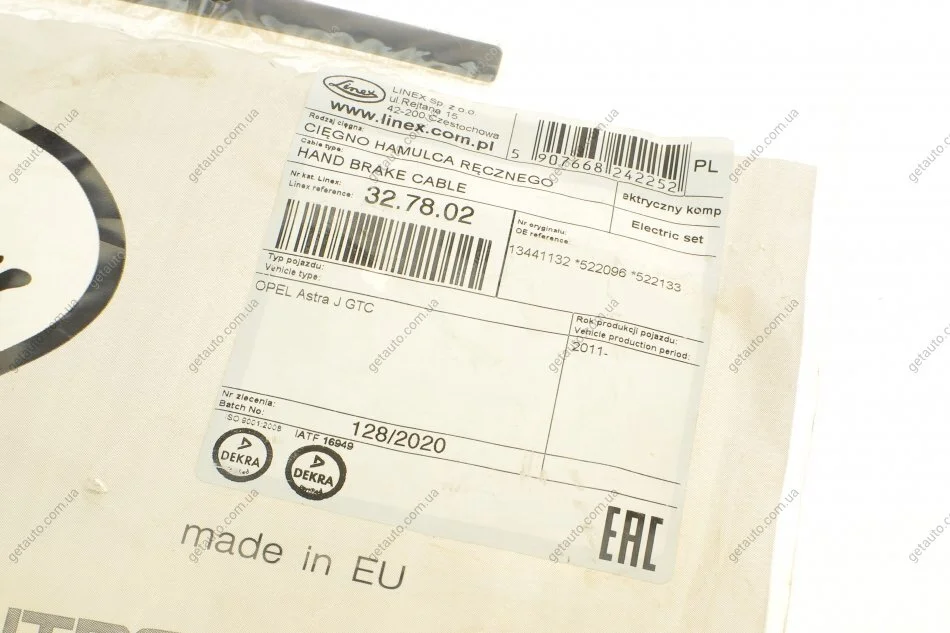 - LINEX 32.78.02 підходить до марок/моделей авто: