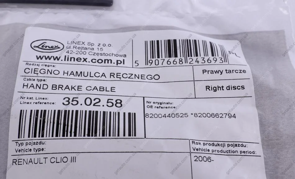 Трос ручного гальма LINEX 35.02.58