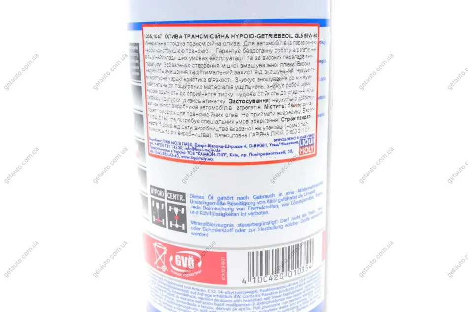 ОЛИВА ТРАНСМIСIЙНА HYPOID-GETRIEBEOIL GL5 85W-90 1Л LIQUI MOLY 1035