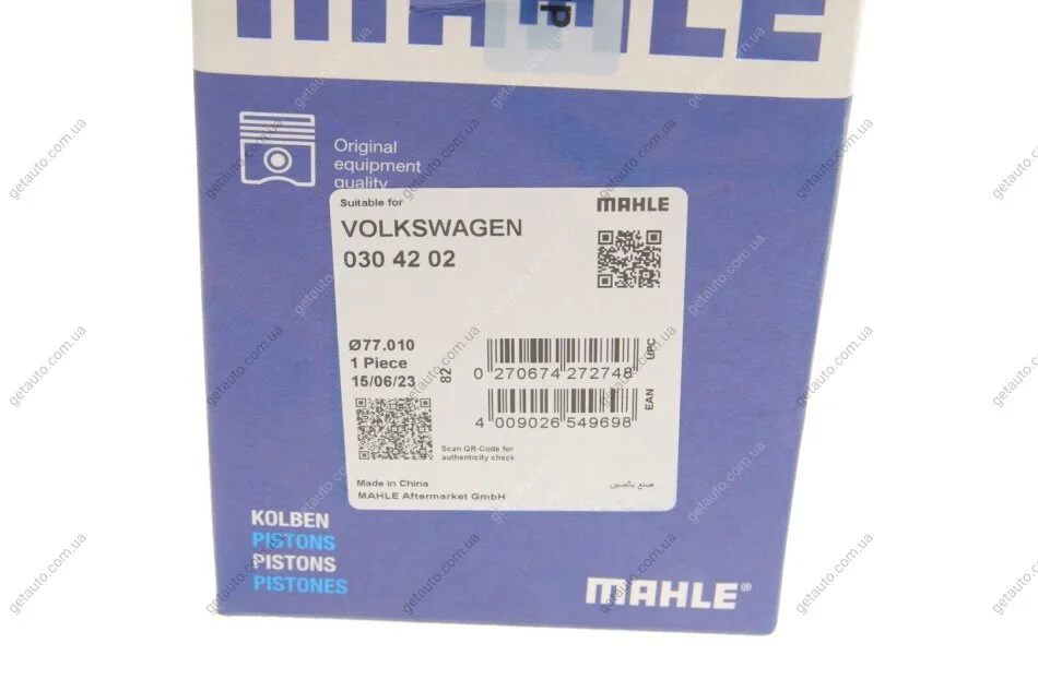 Поршень з кільцями VAG 77,01 AEA/AEE 1,6 94- (Mahle) MAHLE / KNECHT 030 42 02
