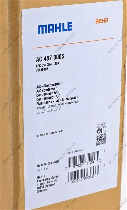 Радіатора кондиціонера MAHLE MAHLE / KNECHT AC 487 000S