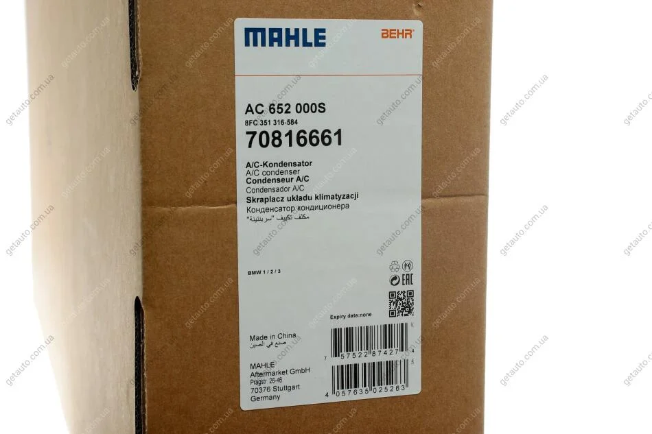 Радіатор кондиціонера MAHLE MAHLE / KNECHT AC 652 000S