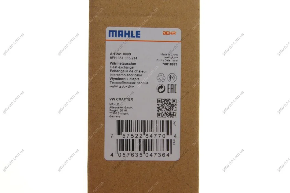 Радіатор пічки MAHLE MAHLE / KNECHT AH 241 000S