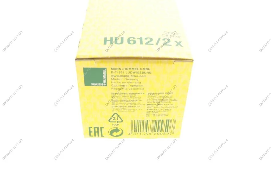 - MANN HU 612/2 X підходить до марок/моделей авто: