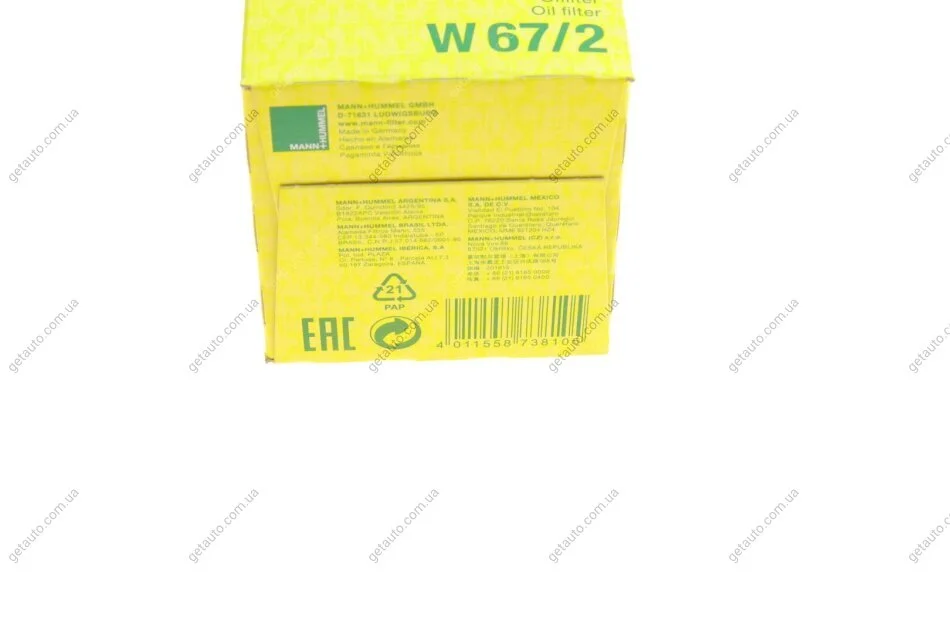 Фільтр масляний -FILTER MANN W 67/2