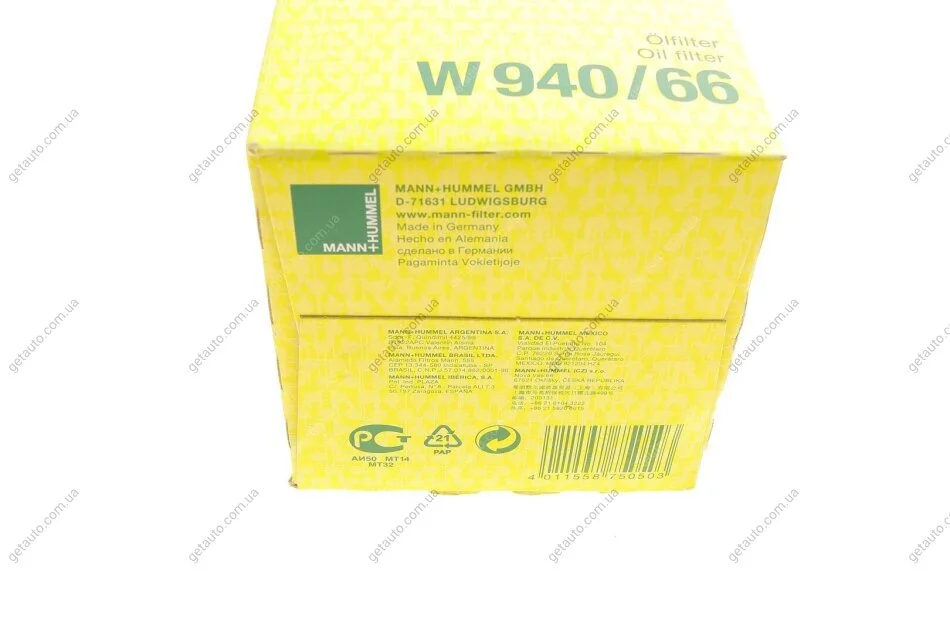 Фільтр масляний -FILTER MANN W 940/66