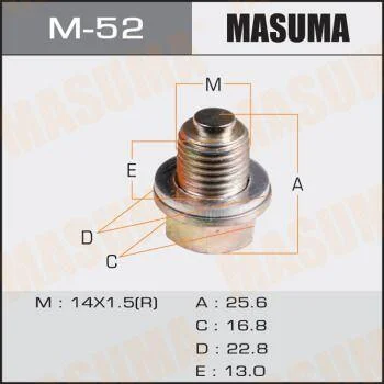 Пробка зливна піддону (з шайбою 14x1.5 mm) GM/ Hyundai/ Kia/ Mitsubishi (M-52) MASUMA M52