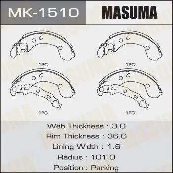 Колодки гальмівні гальма стоянки Nissan Micra (02-10), Note (06-13) (MK-1510) MASUMA MK1510