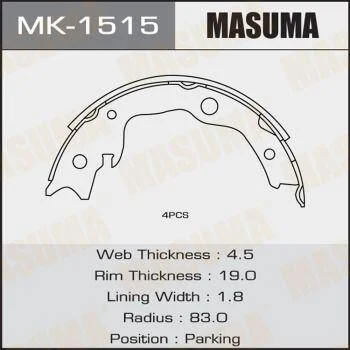 Колодки гальмівні гальма стоянки Nissan Juke (10-), Leaf (10-13), Qashqai (06-13), Tida (07-), X-Trail (07-14) (MK-1515) MASUMA MK1515
