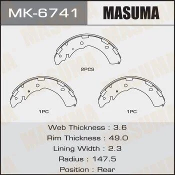 Колодки гальмівні стояночного тормоза (MK-6741) MASUMA MK6741