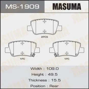 Колодки гальмівні задн Toyota Avensis (08-) (MS-1909) MASUMA MS1909
