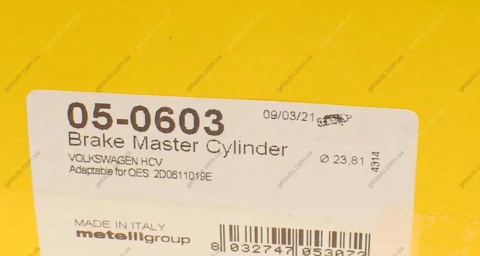 Циліндр гальмівний (головний) Metelli 05-0603