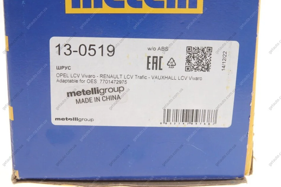 - Metelli 13-0519 підходить до марок/моделей авто: