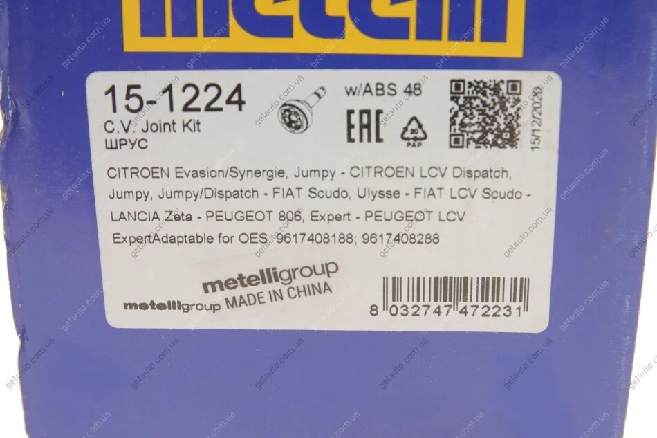 - Metelli 15-1224 підходить до марок/моделей авто:
