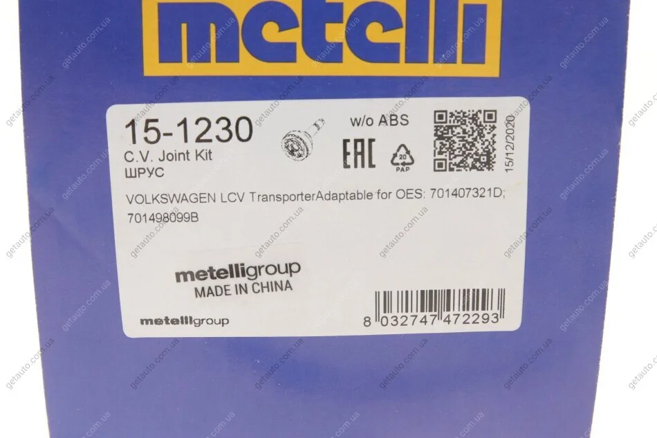 РШ шарнір (комплект) Metelli 15-1230
