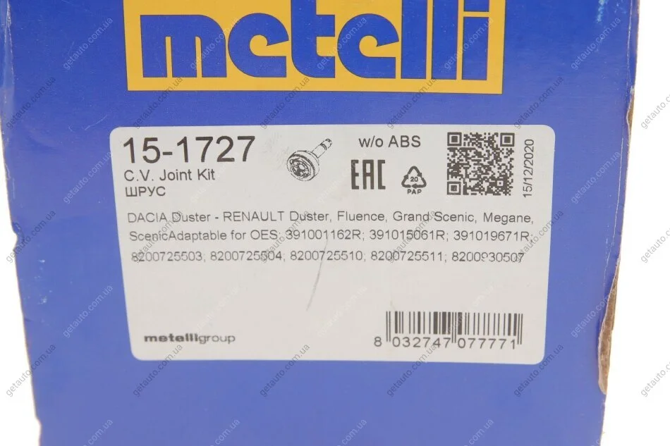 - Metelli 15-1727 підходить до марок/моделей авто: