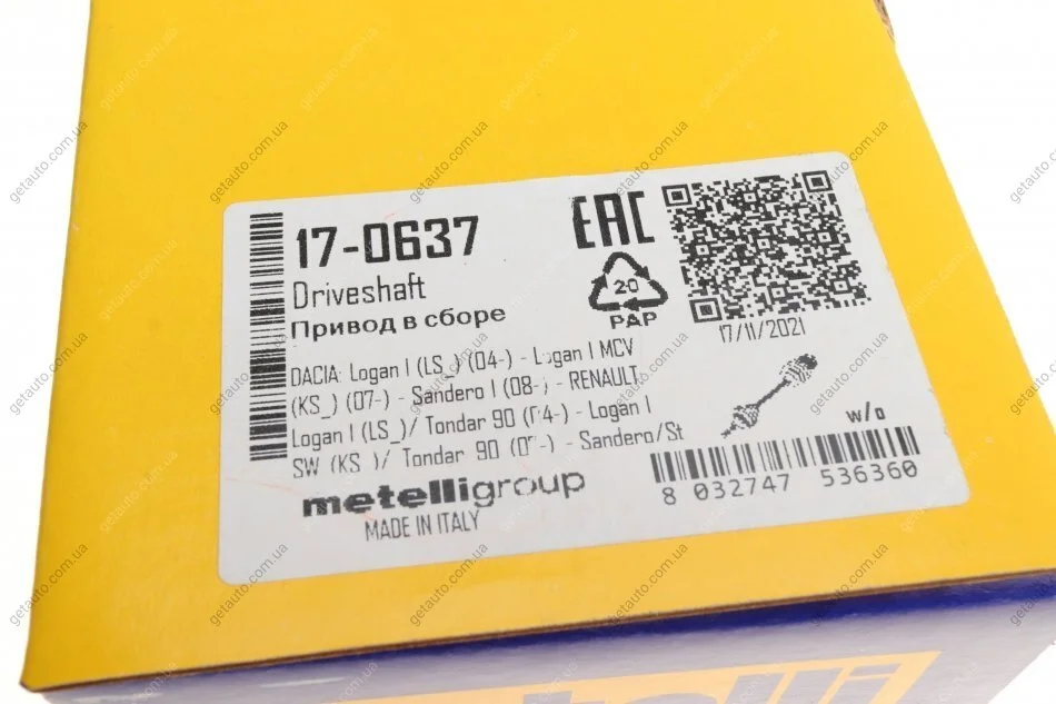 - Metelli 17-0637 підходить до марок/моделей авто: