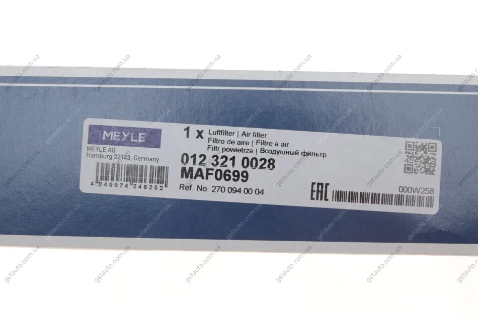 Фільтр повітряний MEYLE 012 321 0028