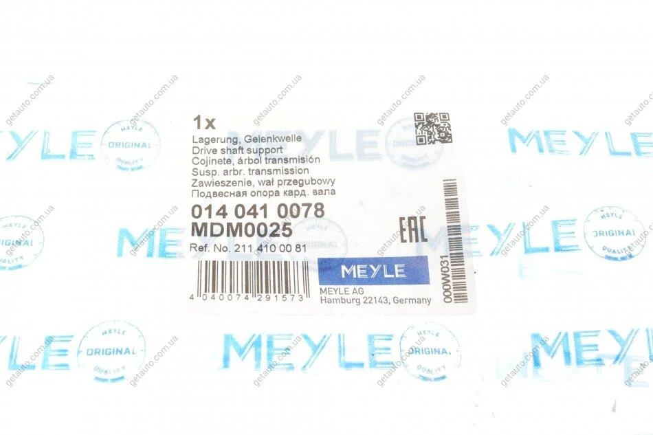 Підвісна опора карданного валу з кульковим підшипником MEYLE 014 041 0078