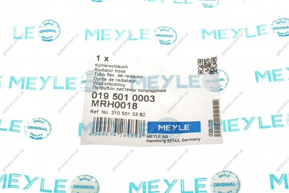 Патрубок водяного охолодження двигуна, вгорі, від двигуна до радіатора MB MEYLE 019 501 0003