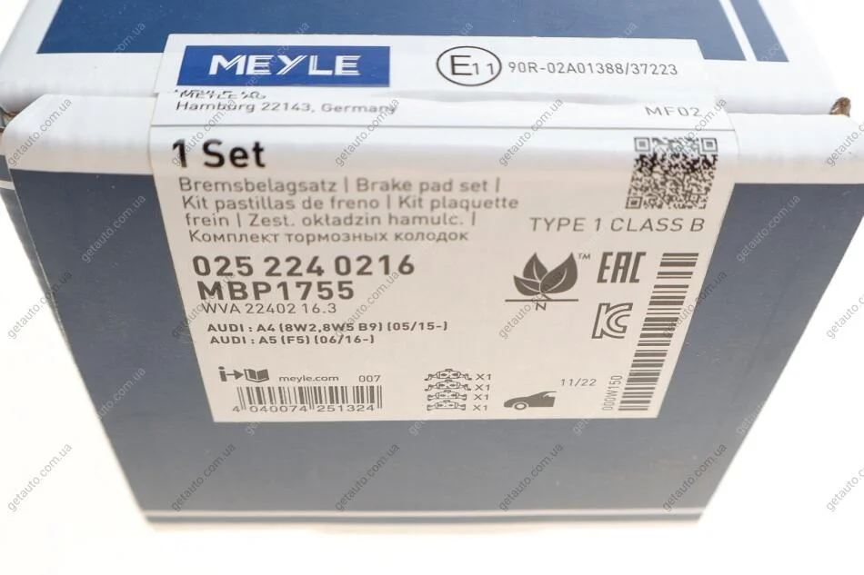 Комплект гальмівних колодок MEYLE 025 224 0216
