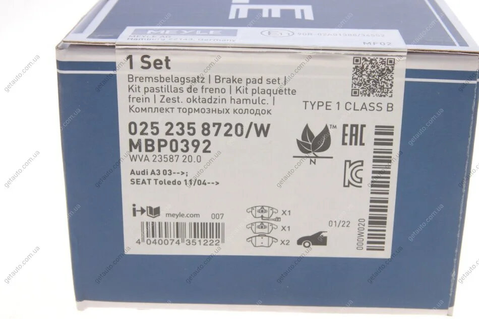 Комплект гальмівних колодок MEYLE 025 235 8720/W