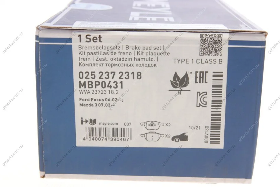 Комплект гальмівних колодок MEYLE 025 237 2318