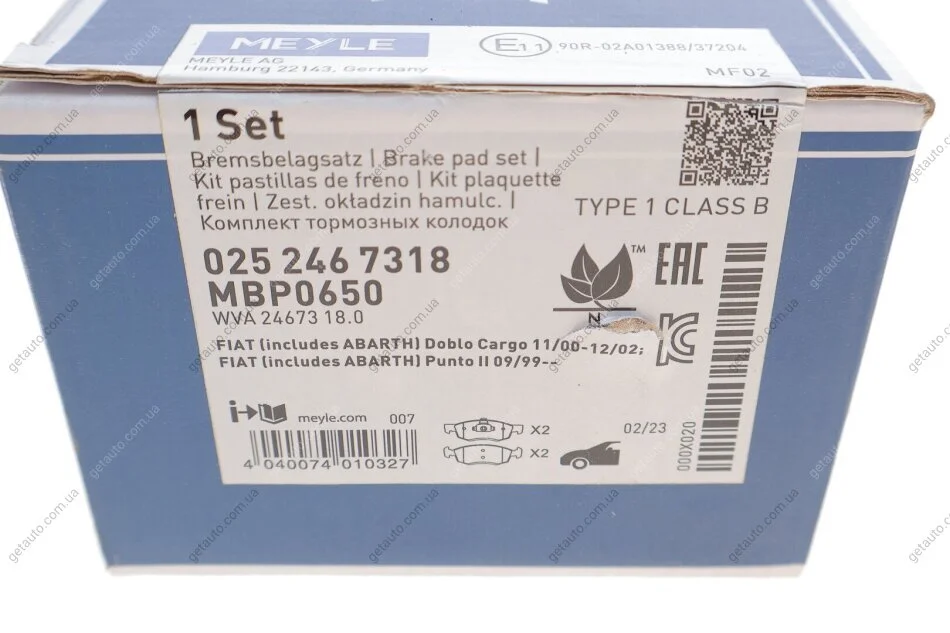 Комплект гальмівних колодок MEYLE 025 246 7318