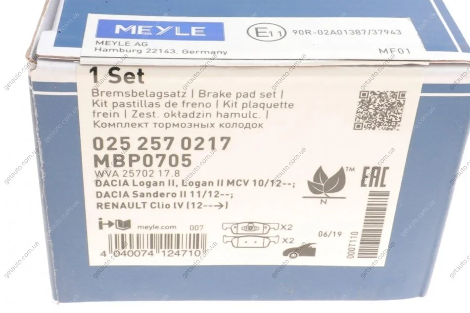 Комплект гальмівних колодок MEYLE 025 257 0217