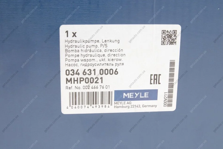 Насос гідропідсилювач керма MEYLE 034 631 0006