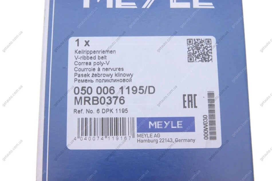 Ремінь поліклиновий 6DPK1195 MEYLE 050 006 1195/D