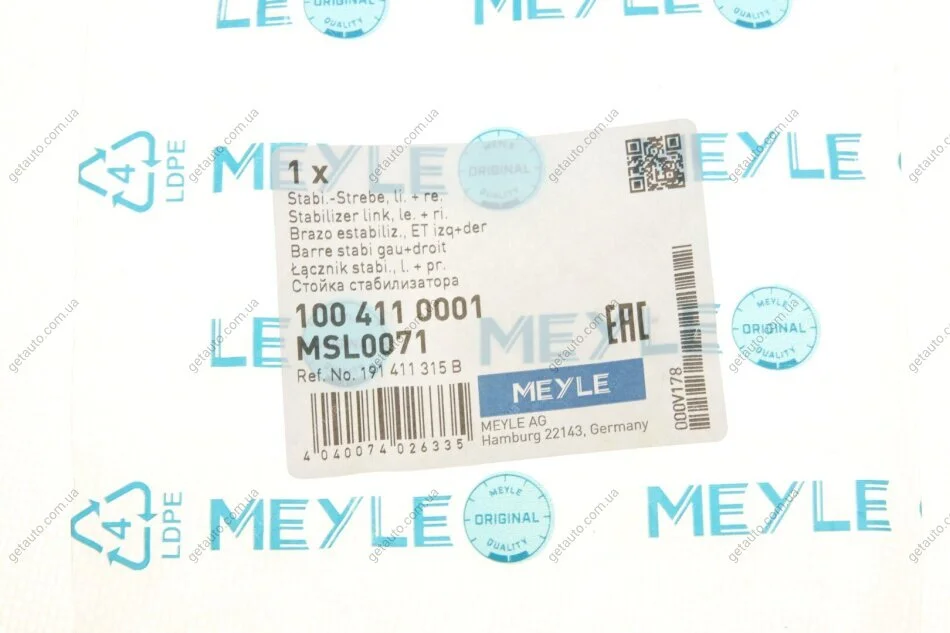 Стійка стабілізатора MEYLE 100 411 0001