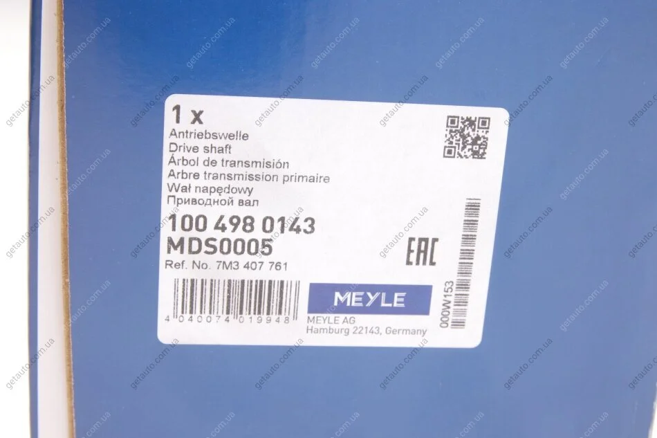 Привідний вал MEYLE 100 498 0143