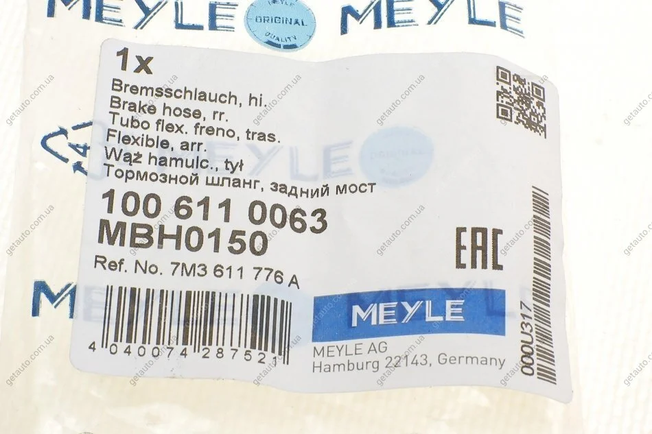 Шланг гальмівний MEYLE 100 611 0063