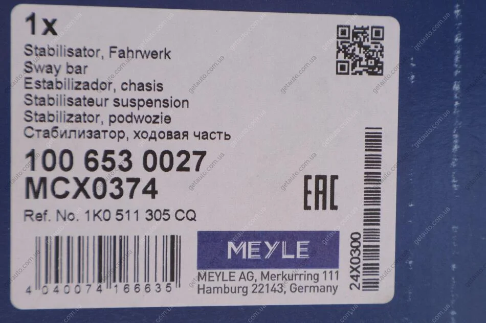 - MEYLE 100 653 0027 підходить до марок/моделей авто: