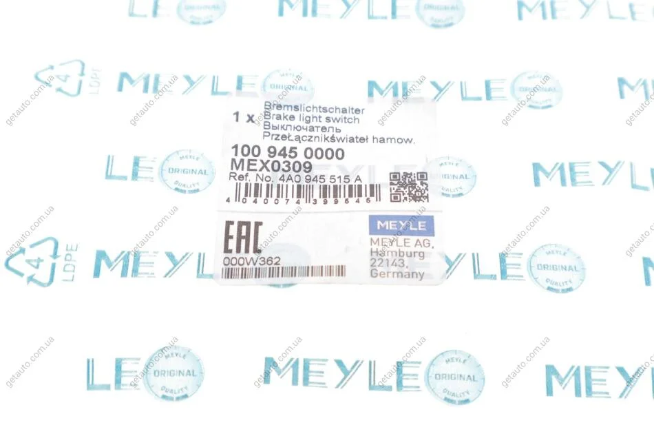 Вимикач сигналу гальмування (стоп-сигналу) MEYLE 100 945 0000