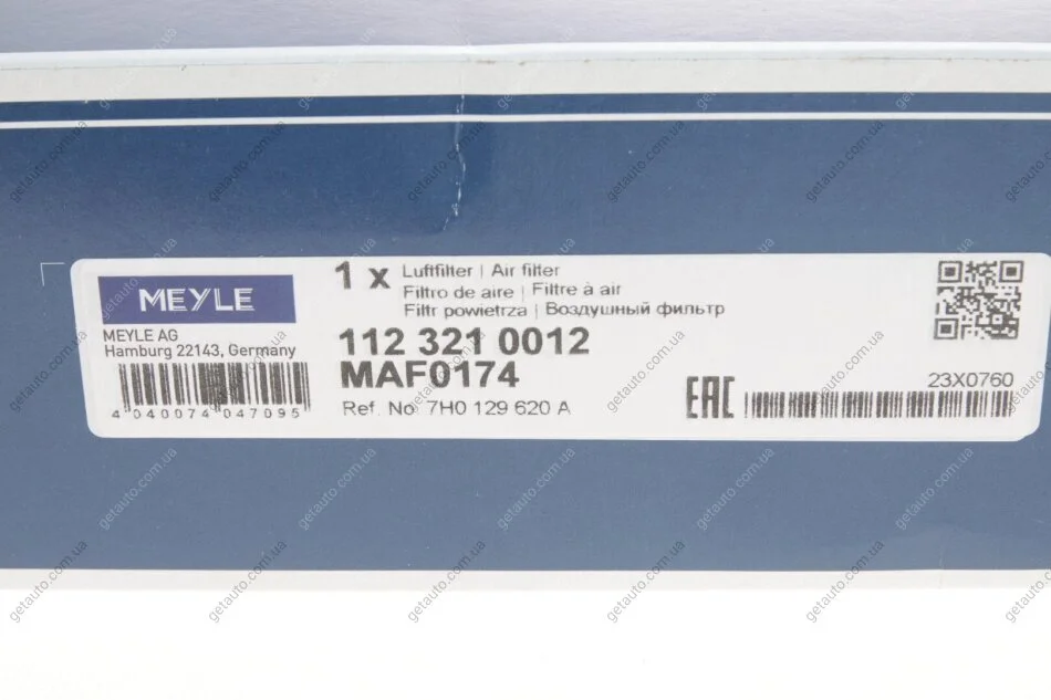 Фільтр повітряний MEYLE 112 321 0012