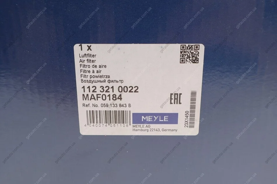 Фільтр повітряний MEYLE 112 321 0022