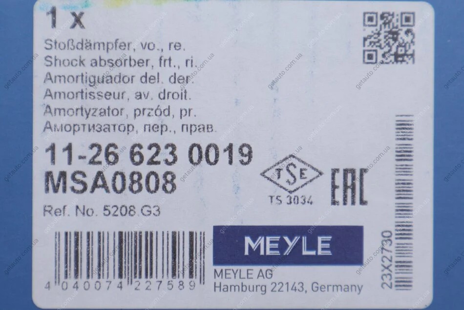 Амортизатор підв. PEUGEOT передн. прав. MEYLE 11-26 623 0019